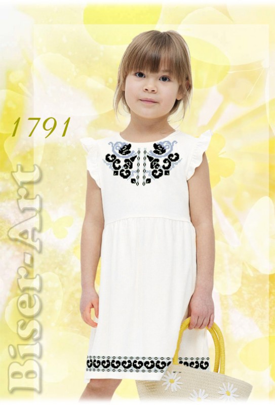 Заготовка для вишивки бісером, нитками чи в комбінованій техніці дитячого плаття без рукавів. Тканина — льон білий (50% натуральна нитка, 50% синтетика). Флізелін додається. Розмір відрізків тканини: перед та спинка — 55х80см, допустима похибка 5 см.