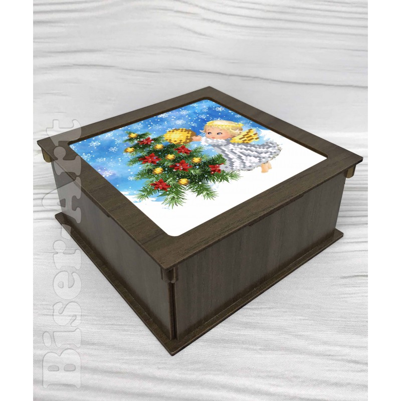 Коробочка під вишивку з дерев'яного матеріалу декорованного під горіх. Розмір коробочки 16х16х7 см, розмір вишивки 14х14 см. Складається з 7 деталей та схеми під вишивку з габардину. Виріб приходить у розібранному вигляді, інструкція по збірці додається. Коробочка може додотково комплектуватися бісером, нитками, голкою. Підходить для подарунків або зберігання прикрас чи інших дрібниць.