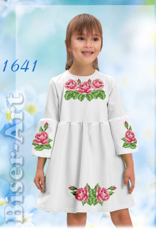 Заготовка для вишивки бісером, нитками чи в комбінованій техніці дитячого плаття. Тканина - габардин. Флізелін додається. Розмір відрізків тканини: перед та спинка - 55х80см.; рукава — 40х70см, допустима похибка +/-5см.