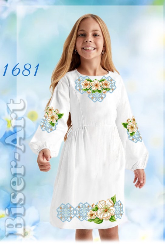 Заготовка для вишивки бісером, нитками чи в комбінованій техніці дитячого плаття. Тканина — льон білий (50% натуральна нитка, 50% синтетична). Флізелін додається. Розмір відрізків тканини: перед та спинка - 55х80см.; рукава — 40х70см, допустима похибка +/-5см.