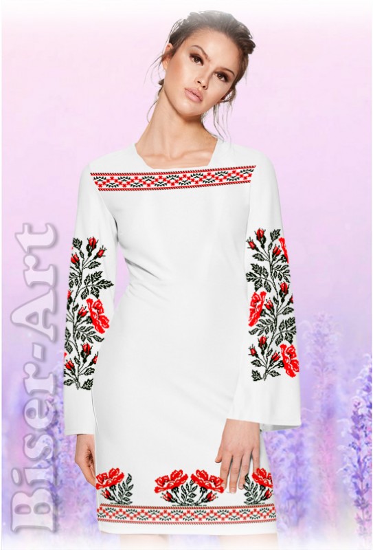 Заготовка для вишивки бісером, нитками чи в комбінованій техніці жіночого плаття. Тканина — льон білий (50% натуральна нитка, 50% синтетична). Флізелін додається. Розмір відрізків тканини: перед та спинка - 110х70см.; рукава — 60х70см. Допустима похибка +/-5 см. УВАГА, ВИРІБ НЕ ПОШИТИЙ!