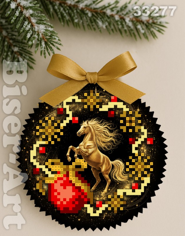 Пошита новорічна іграшка діаметром ~10см. Малюнок по обидва боки. Тканина габардин. Наповнювач холофайбер. Комплект бісеру вказаний на обидві сторони.