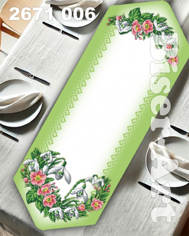 Розмір ранеру 26х71 см. Краї запаяні, тканина по всій площині підклеїна флізеліном. Малюнок чіткий і насичений, вишивка розташована з вдох сторін